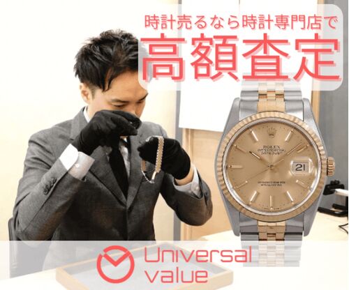 時計の価値を正しく見極め、どこよりも高く買い取る【ユニバーサルバリュー】 見出し1:ユニバーサルバリューの強みとは ユニバーサルバリューは、ブランド時計の専門査定士が在籍し、国内外の最新相場をもとに高額買取を実現する時計買取サービスです。「ど…